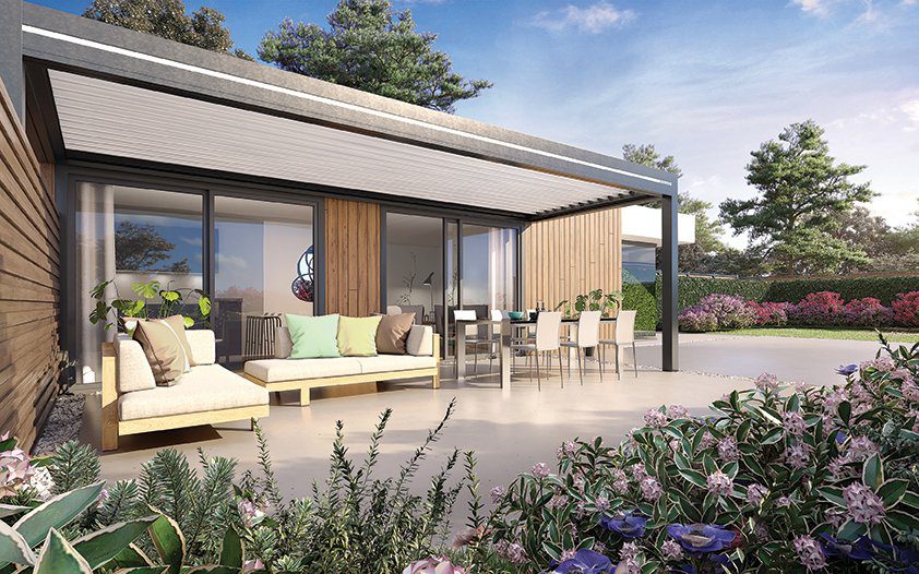 Une fois fermé, le brise-soleil orientable apporte à votre intérieur une atmosphère intime et sereine, totalement hermétique aux regards de la rue. Orientables, les lamelles horizontales permettent de moduler l’entrée de la lumière sans occulter la vue.